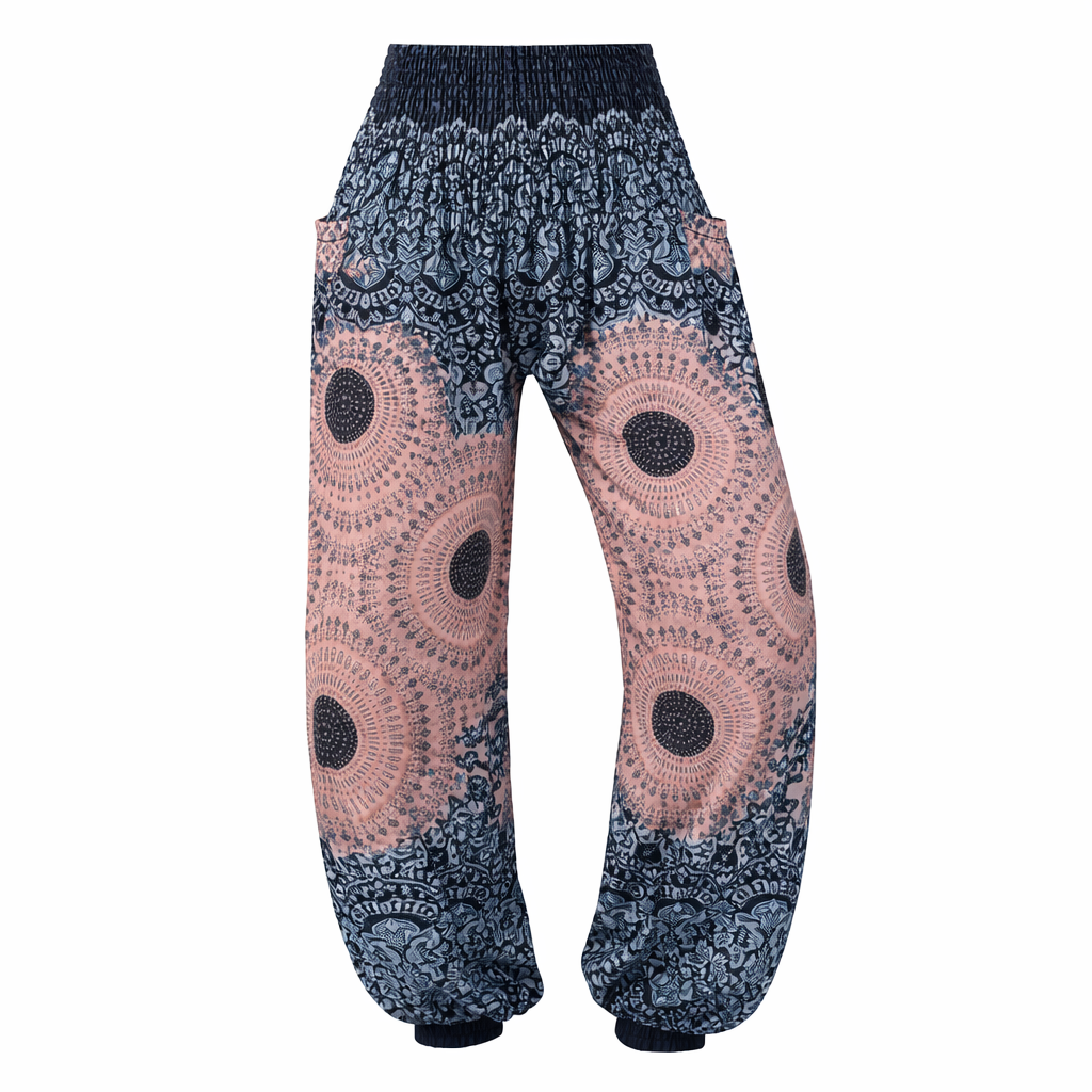 The Free Spirit Mandala Air harem pants bring together soft tones of white, rose pink, muted purple, and airy blue in a mandala pattern that feels weightless, dreamy, and beautifully expressive. As part of the Air Collection, they carry the essence of expansion, breath, and open-sky movement.