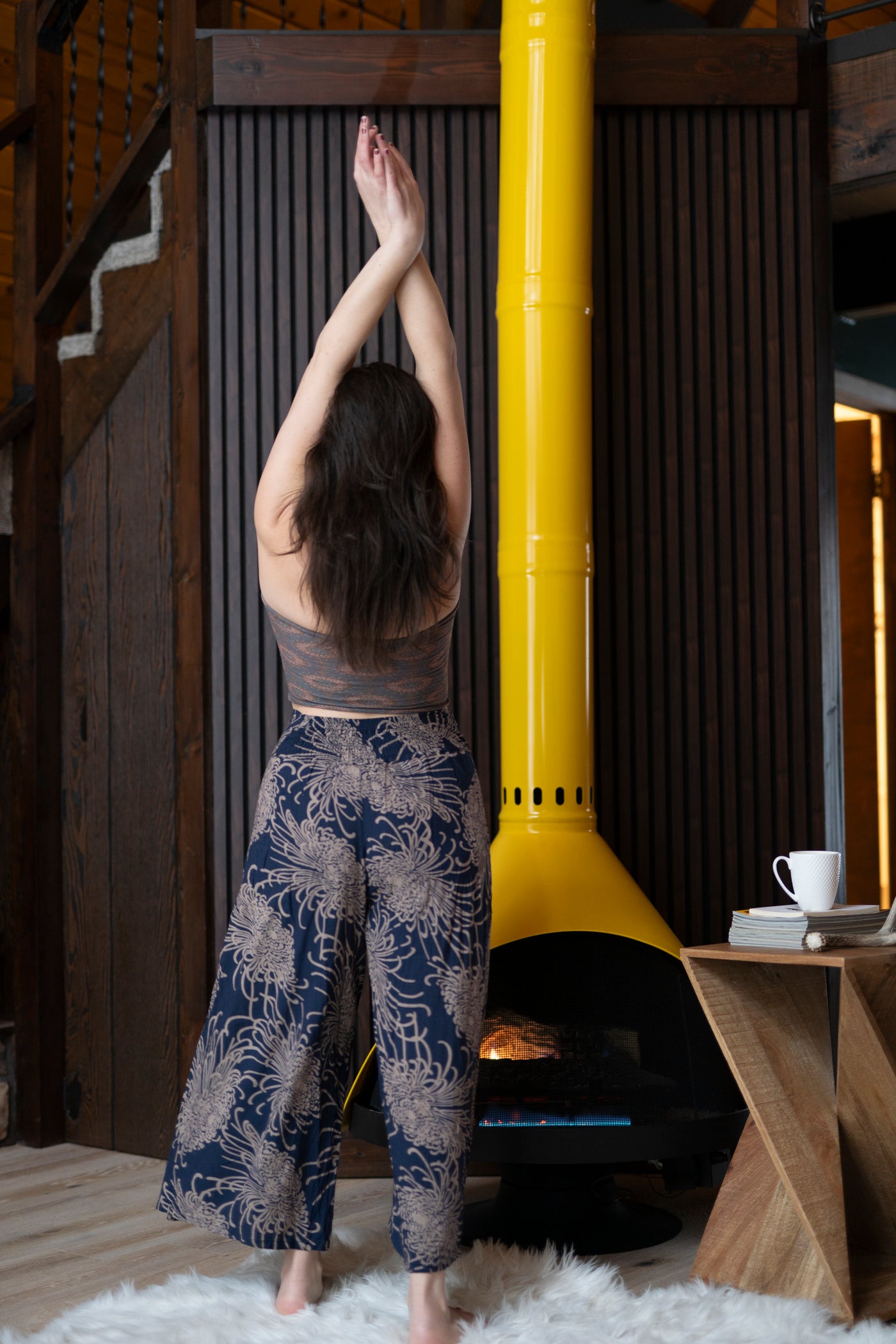 Designed with intention, these palazzo pants do not include pockets—allowing the fabric to fall cleanly and uninterrupted for an elongated, elegant line. The relaxed waistband offers comfortable wear at the waist or hips, supporting ease of movement without restriction. This is a style made for wandering, dancing, resting, and expressing yourself freely.