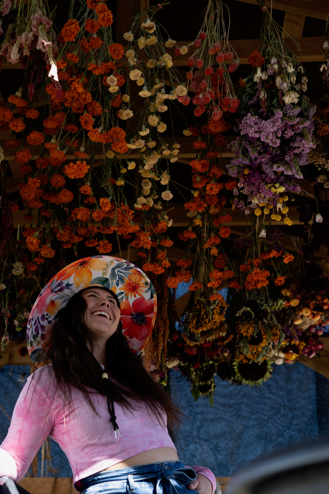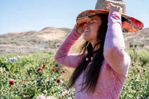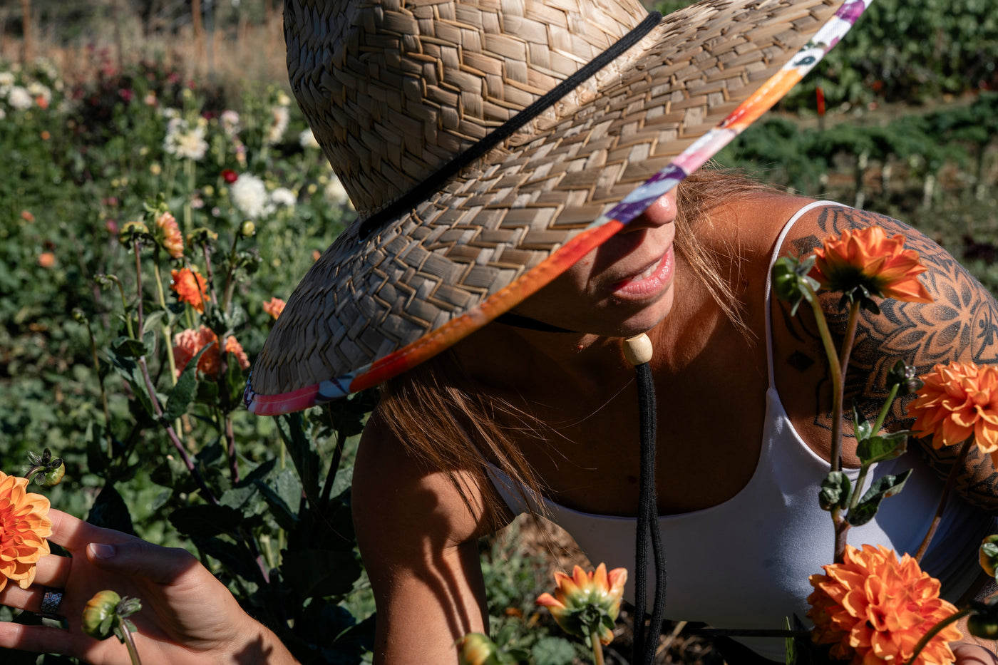Josephine was made for the woman who feels most at home among petals and soil, who pauses to breathe in beauty, who moves slowly enough to notice the colors around her. Crafted from natural straw that stays cool under warm skies, she offers full 360° sun protection for your face, neck, and shoulders — your personal shade sanctuary through every garden, trail, or day spent wandering farmers markets.