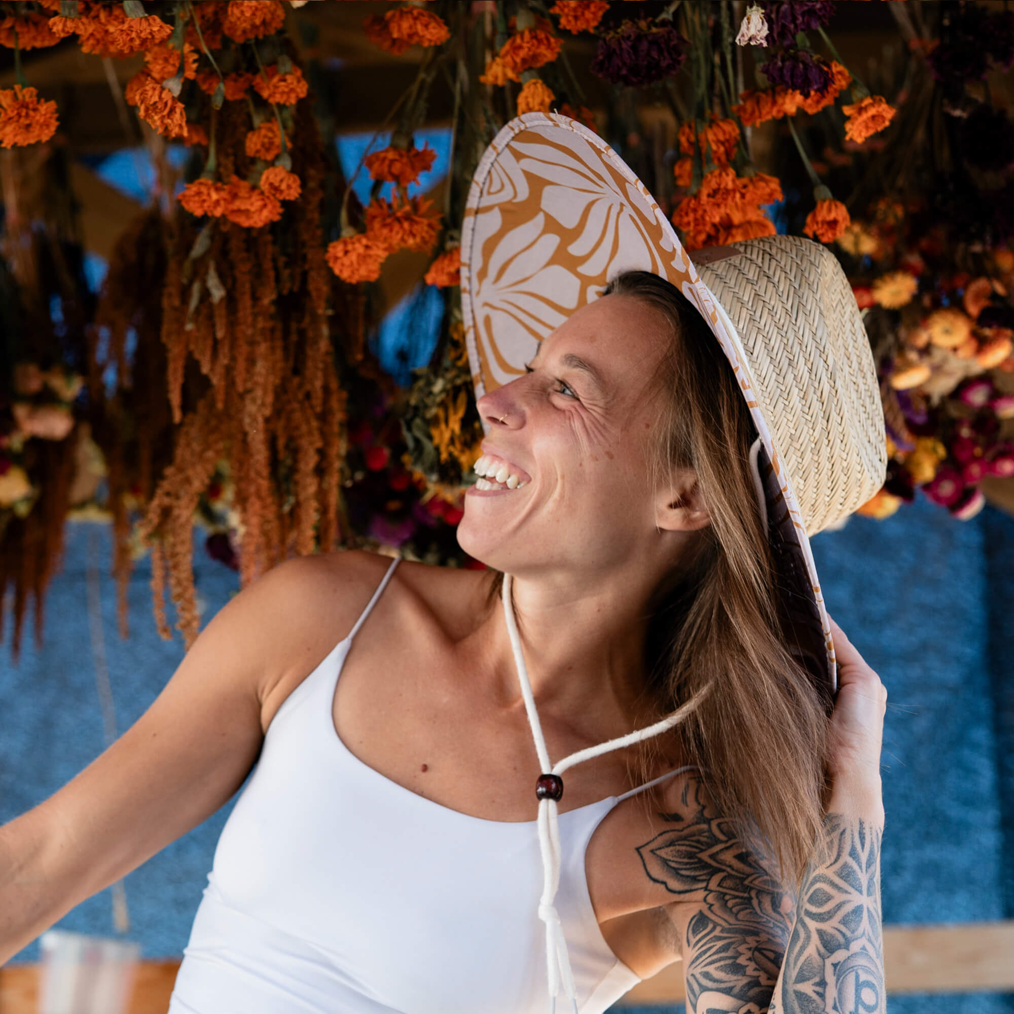 The Charlee hat is our signature crown- The white + mustard under-brim print calls on Fire energy: confident, striking, impossible to ignore.