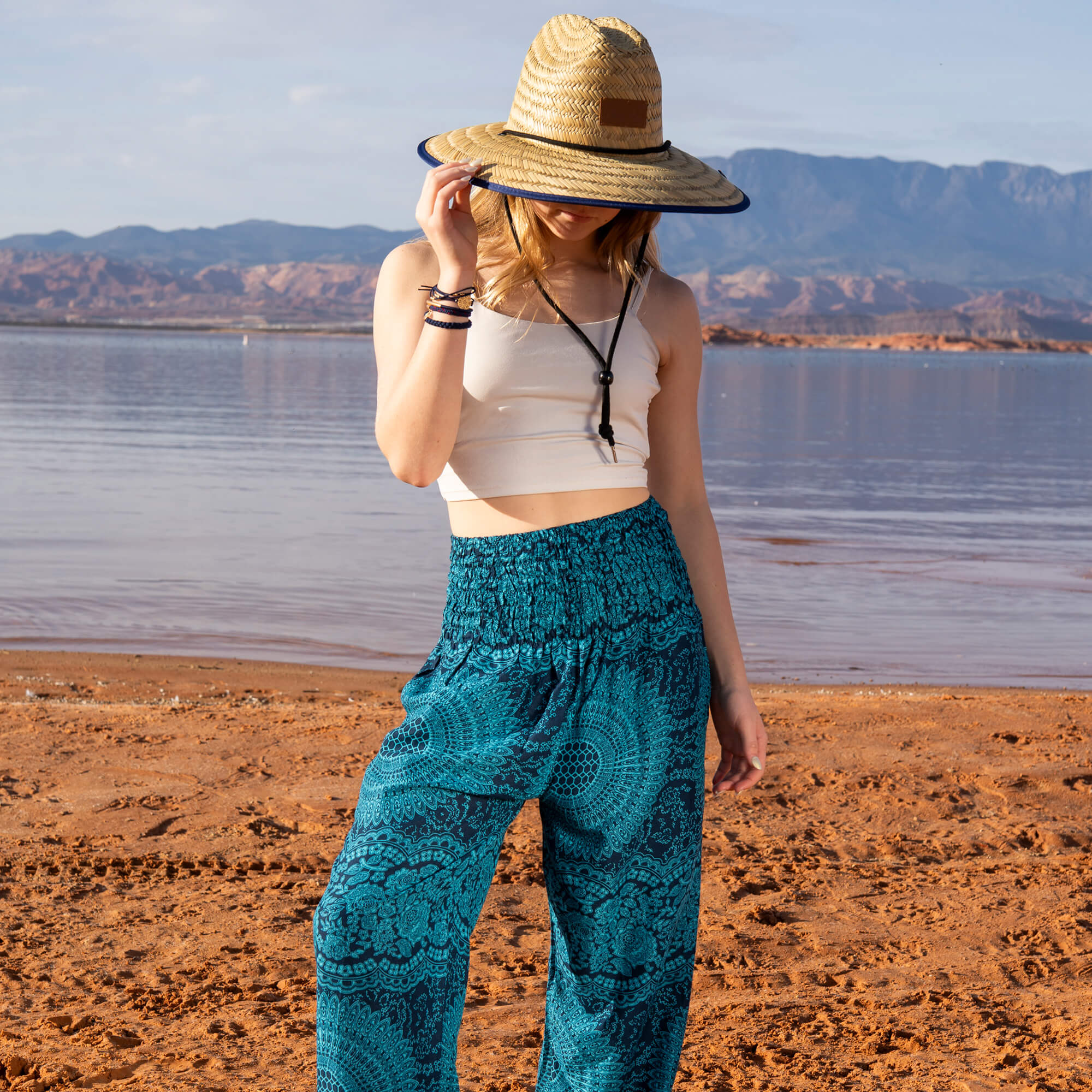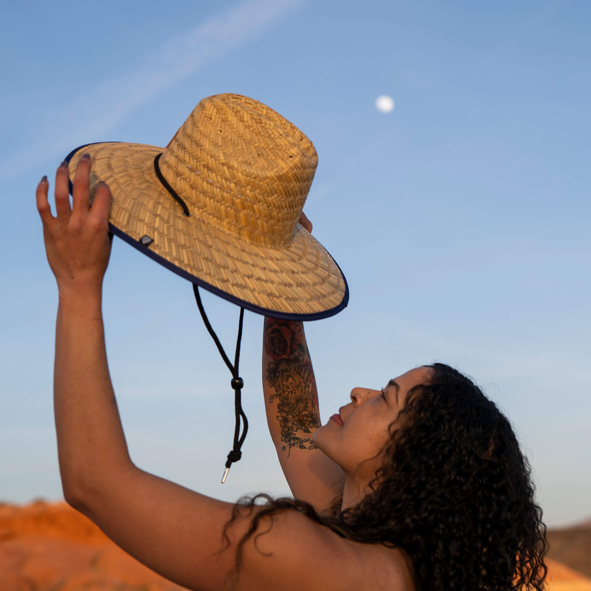 JoJo was made for the woman who draws power from stillness, who listens closely to her intuition, who feels most at home near ocean horizons and endless blue. Crafted from breathable natural straw, she offers full 360° sun protection for your face, neck, and shoulders — keeping you shaded through coastal walks, paddle-board mornings, and reflective moments by the water’s edge.